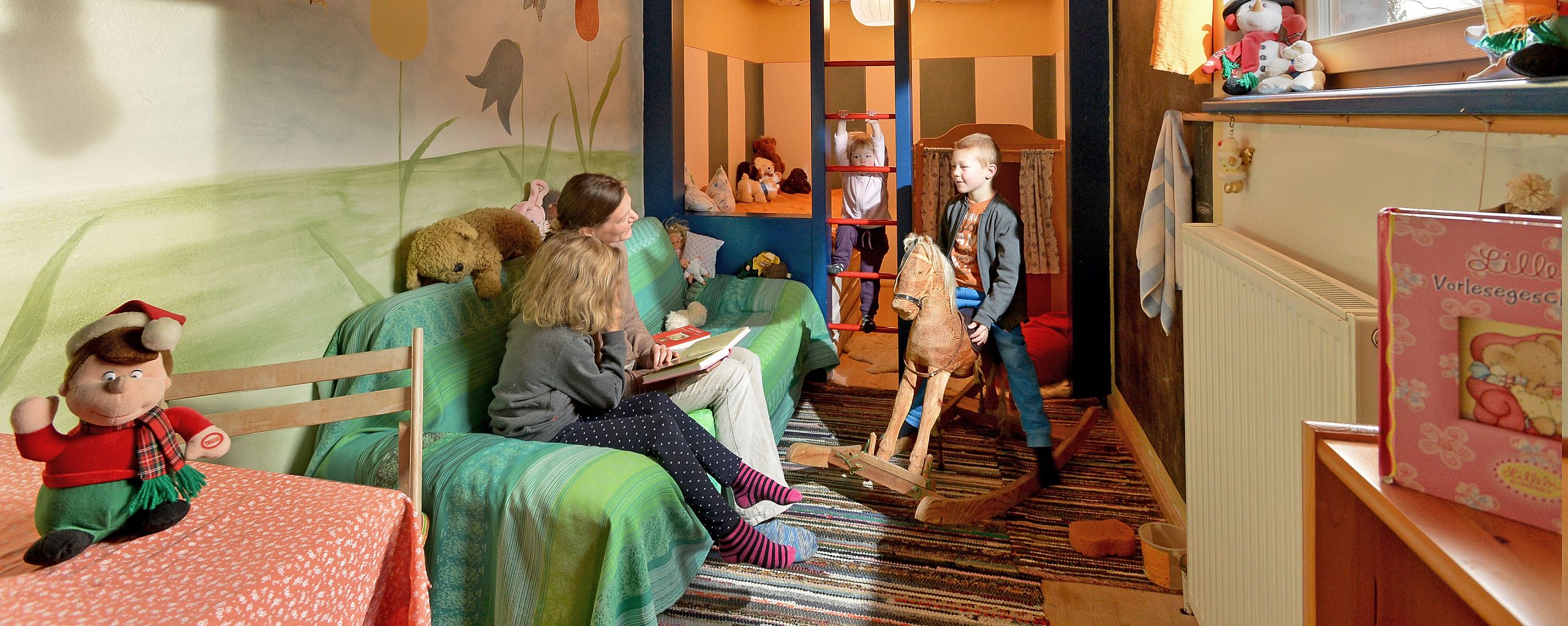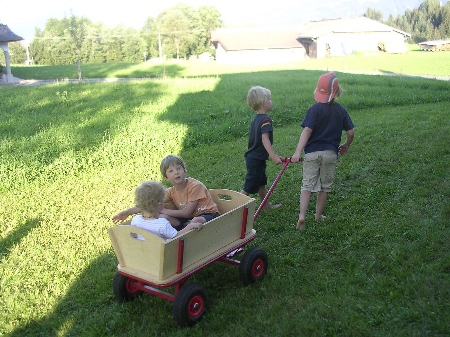 Im Jägerhof befindet sich ein Kinderspielzimmer, Tischtennis- und Tischfußballzimmer und hinterm Haus viel Platz um den Spielplatz für die Kinder zum Toben. Gerne dürfen die Kinder die Hasen und Katzen beim Bauernhof versorgen. Die Kinder treffen sich gerne vorm Hof um mit dem Kinderfahrzeugen zu fahren und miteinander zu spielen und vormittags und am späteren Nachmittag beim Stall, um die Kühe und Kälber zu besuchen. Wir haben selber Kinder ...es ist also immer was los!