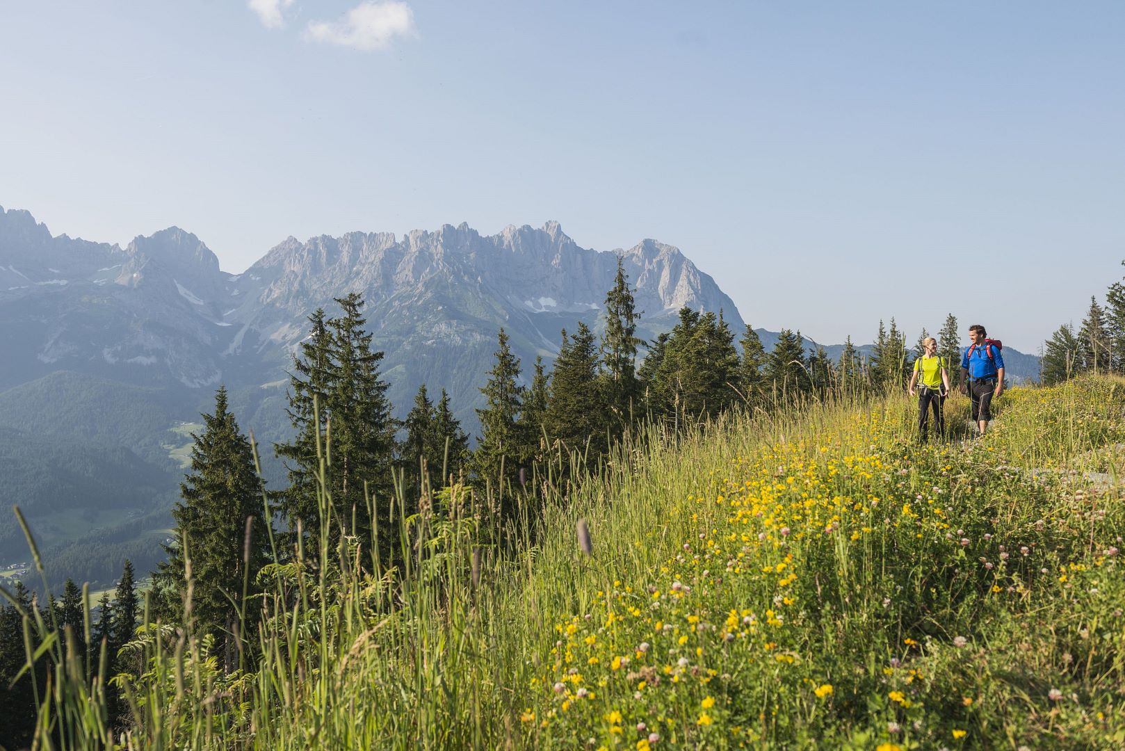 Wandern im Wilden Kaiser Gebirge gehört zu einem der Highlights in Going. Die Wanderwege führen, bis zum Fuße steiler Steinwände und quer durch grünen Almwiesen bishin zu verwüsteten Geröllfelder, zu wunderschönen Erlebnissen für die ganze Familie. Aber auch das erforschen, von sanft ansteigenden Grasbergen im Norden der Kitzbühler Alpen, ist dank modernster Gondelbahnen und gut ausgebauten Panoramawegen, kein Problem. Von dort aus können Sie den spektakulären Ausblick auf die Kronen den Wilden Kaisers genießen.